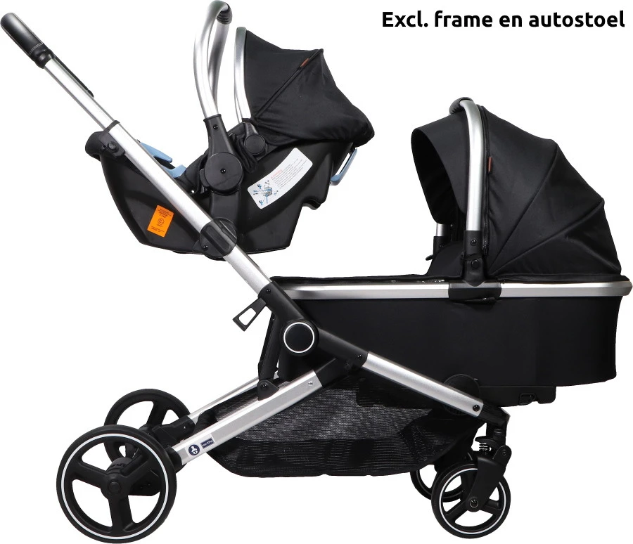 Met de Amigo reiswieg maak je eenvoudig een duo kinderwagen van de Amigo tanden duowagen van Ding! In deze reiswieg kan je comfortabel een pasgeboren kindje vervoeren. In de tandem duowagen kan je op deze manier twee kindjes die niet even oud zijn veilig vervoeren.