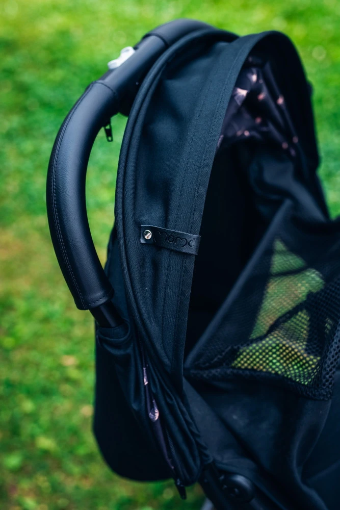 De wagen is voorzien van een ruime zonnekap met mooi design die je kindje beschermd tegen verschillende weersomstandigheden. De kap heeft een kijkluikje, zodat je je kindje altijd kunt zien. Dankzij de 5-punts veiligheidsgordel en de valbeugel zit je kindje altijd veilig in de wagen. De handvaten zijn tevens stijlvol afgewerkt met eco-leer. Ook heeft de wagen een ruime boodschappenmand waar je de nodige spulletjes in op kunt bergen.